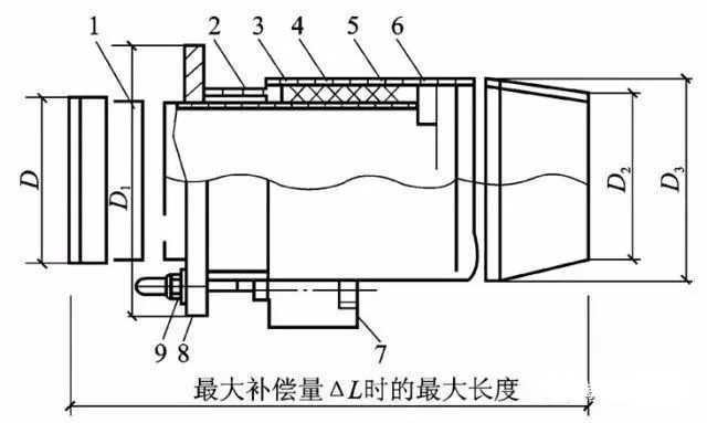1導流管 2波紋管 3限位拉桿 4限位螺母